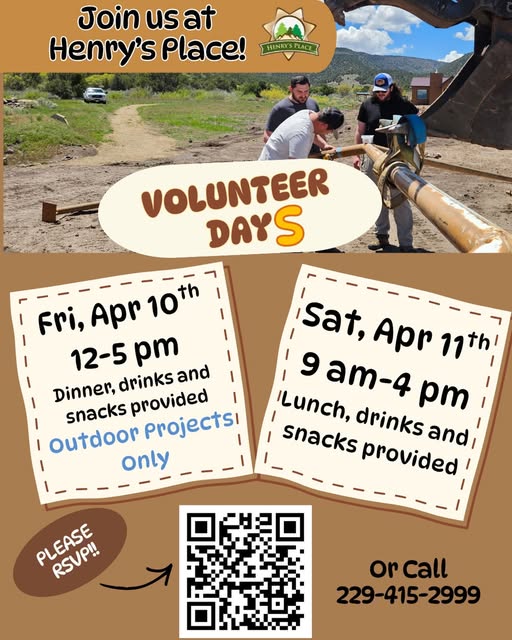 We have opportunities to paint, clean, organize, inventory, build fence, weed, mow, rake, plant flowers, etc… We’ll match our needs to your abilities and are thankful for any help you can give!